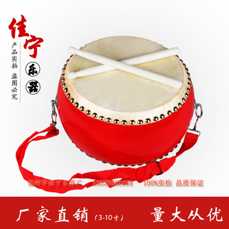 【送4礼品】3-10寸儿童玩具鼓牛皮鼓幼儿园小锣鼓镲敲打鼓舞狮鼓9