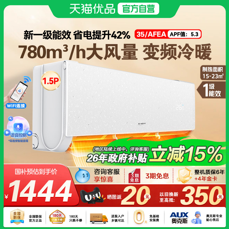 AUFIT奥克斯空调出品1.5匹一级能效变频冷暖家用省电以旧换新补贴