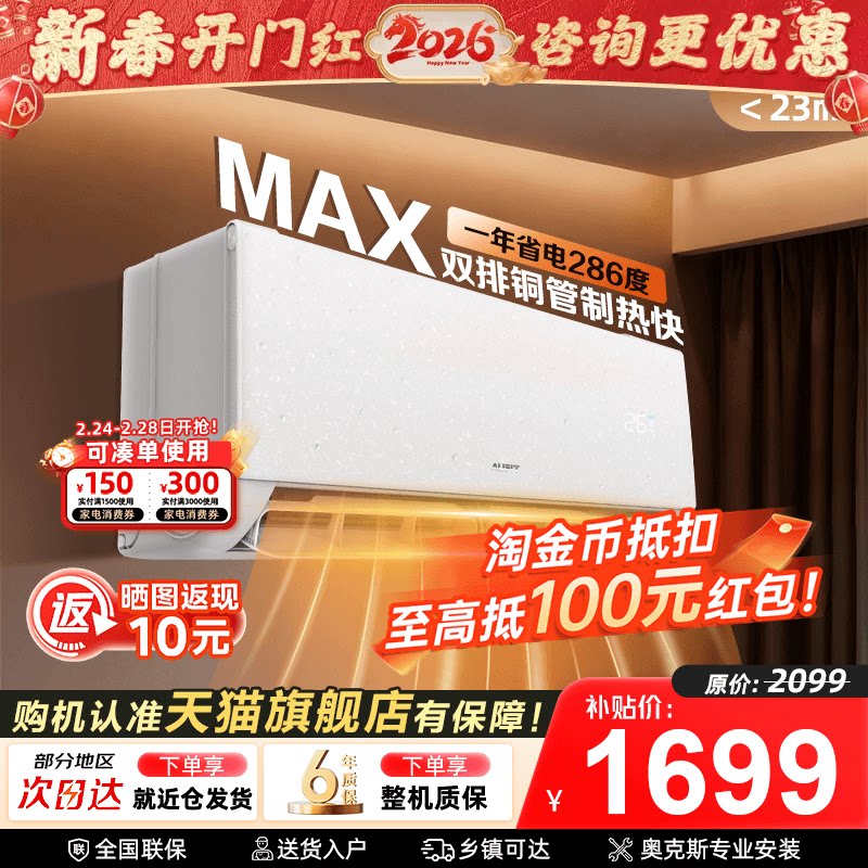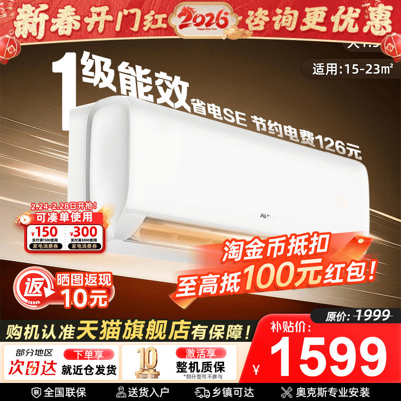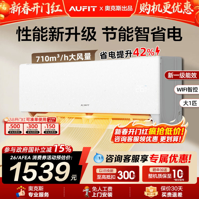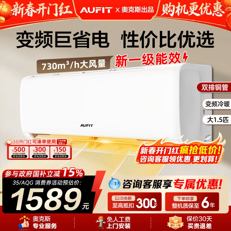 补贴]AUFIT空调奥克斯出品大1.5匹1匹一级能效变频冷暖智能家用2P