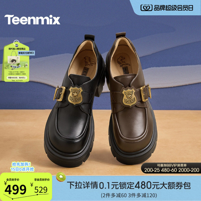 吴宣仪同款天美意疯狂动物城联名厚底增高常青藤乐福鞋女新款皮鞋
