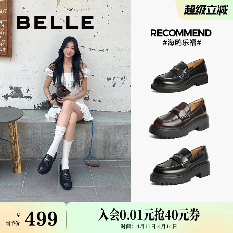 周雨彤同款百丽海鸥乐福鞋2.0厚底增高真皮小皮鞋单鞋子B5H1D