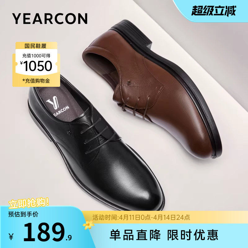 意尔康男鞋真皮正装商务男士皮鞋结婚新郎透气内增高男款年轻软底