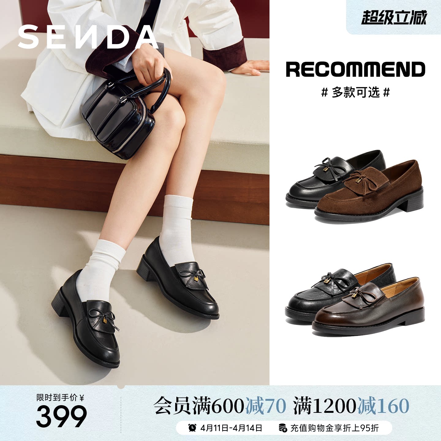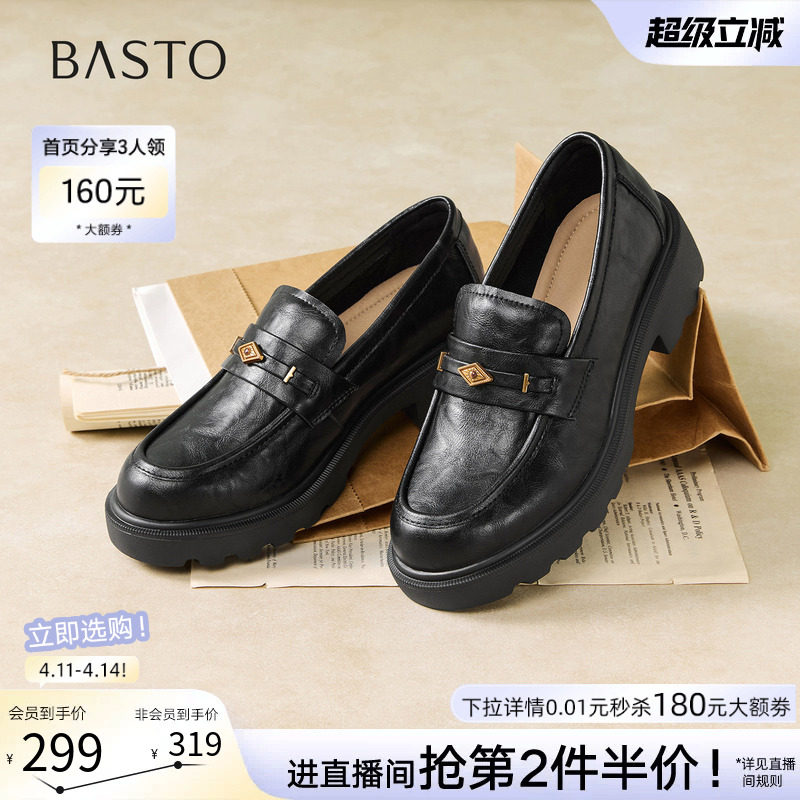 百思图2026春新款英伦风厚底增高粗跟乐福鞋小皮鞋女单鞋UXV08AA6