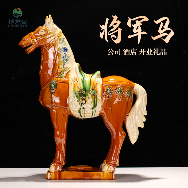 博艺萱唐三彩贴花将军马家居装饰品招财马陶瓷马摆件公司开业礼品