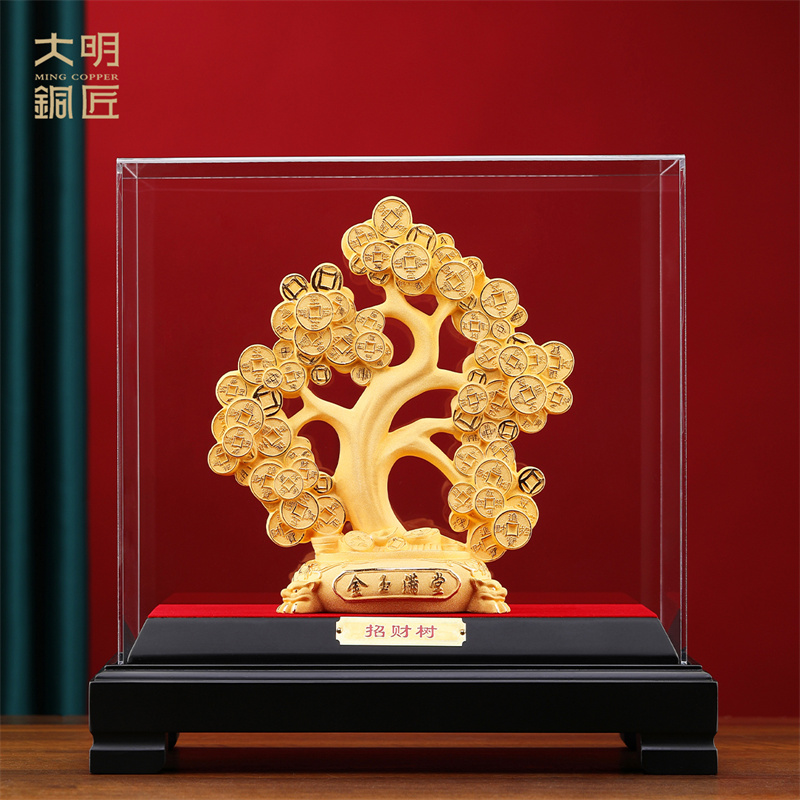 大明铜匠绒沙金招财发财树摆件摇钱树办公室装饰乔迁公司开业礼品