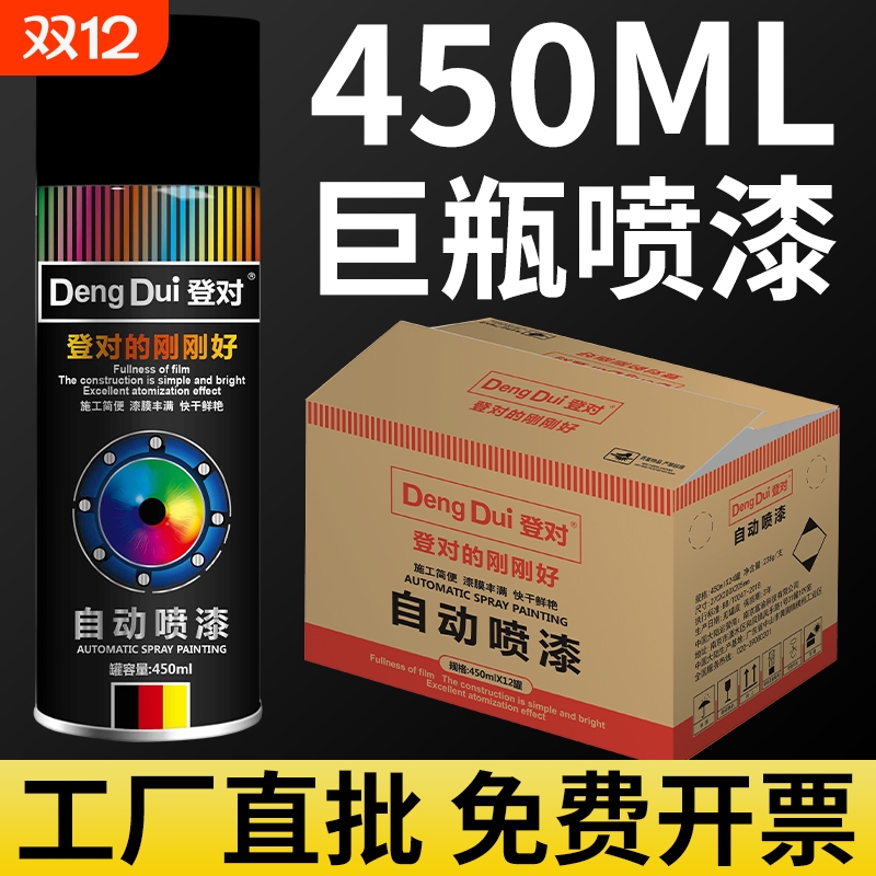 整箱12瓶大容量自动喷漆手摇自喷漆黑色白色红色涂鸦油漆喷罐批发