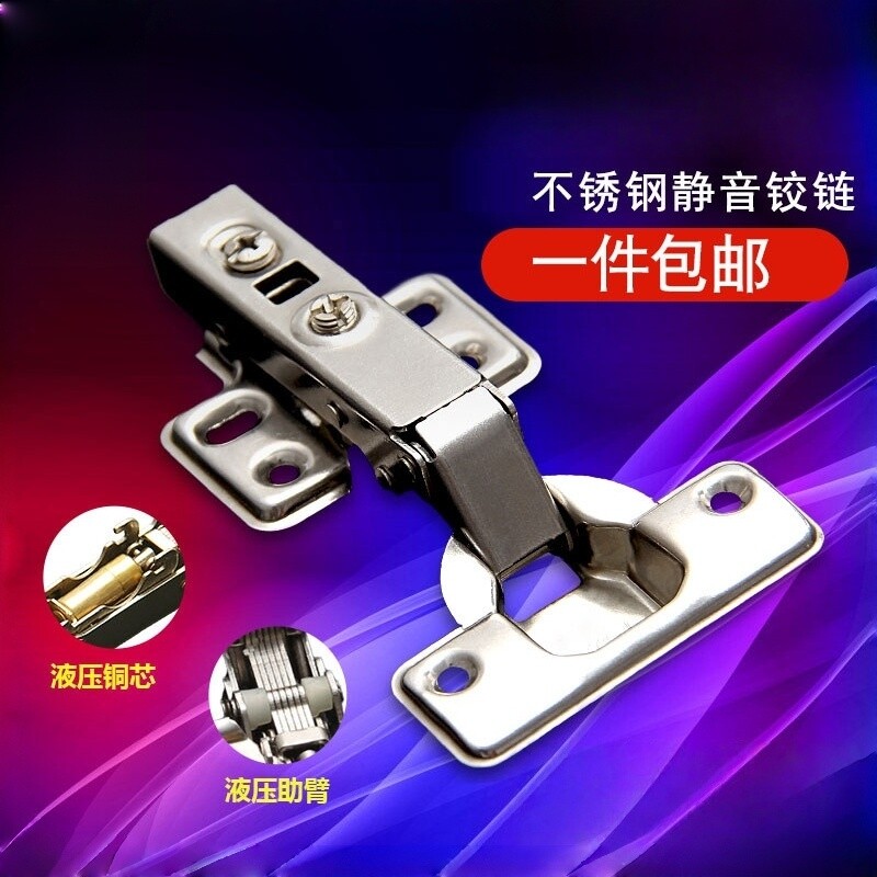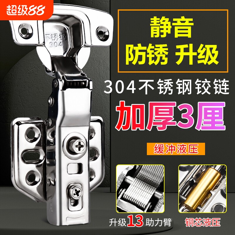 304不锈钢缓冲阻尼铰链橱柜门五金折叠飞机合页液压全盖柜子衣柜