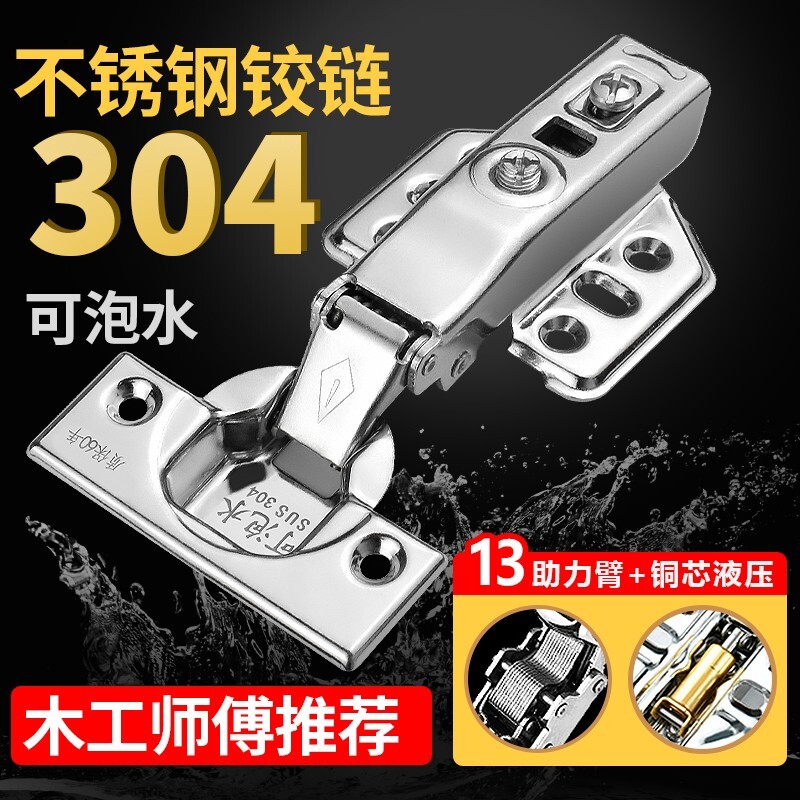 【铜芯】304不锈钢缓冲阻尼铰链橱柜门半盖中弯五金折叠飞机合页