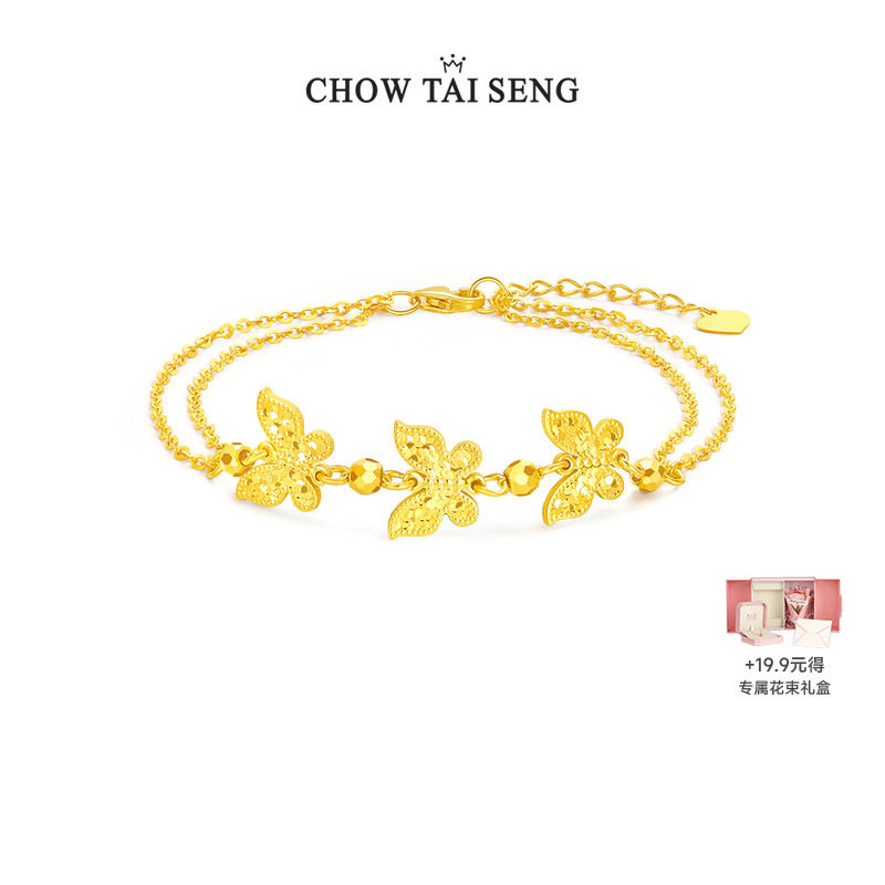 中国黄金央创蝴蝶纯银手链女生款轻奢小众圣诞节礼物送女朋友S925