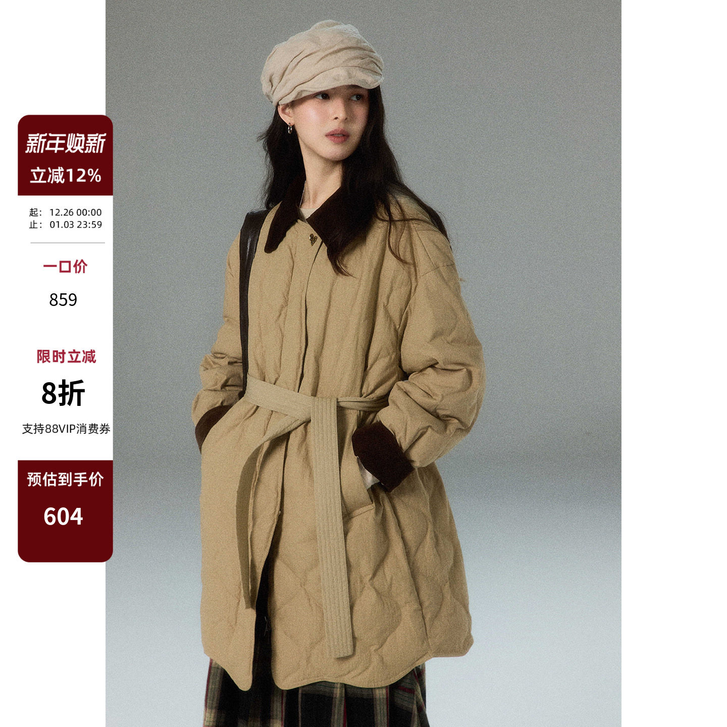 贰羊设计【晚夏苍暮】灯芯绒翻领羽绒服女简约风菱格秋冬加厚外套