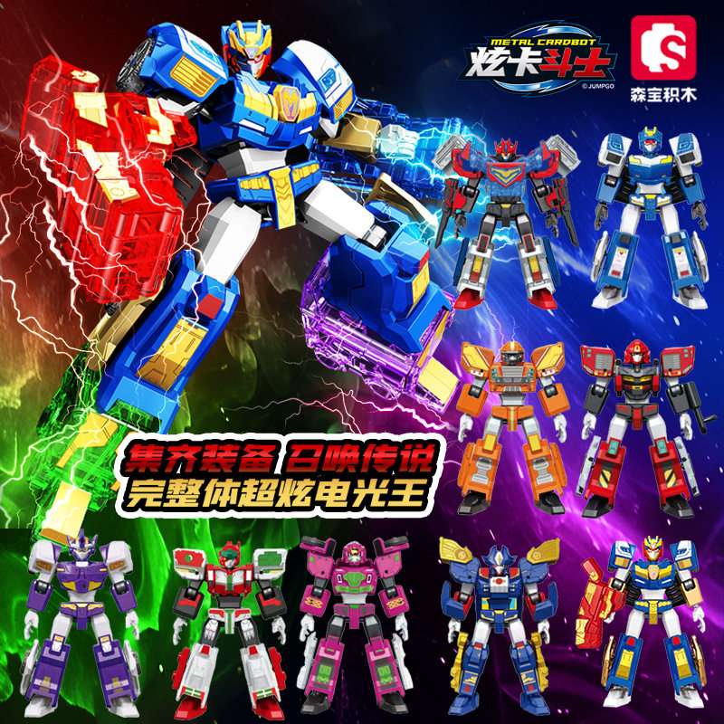 正版炫卡斗士 积木人盲盒 炫蓝闪电 超炫电光王 合体机甲拼装礼品