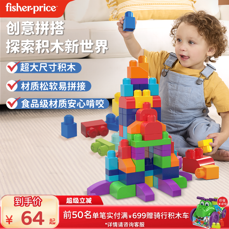费雪美高积木拼装益智玩具宝宝大颗粒防吞咽启蒙积木1岁+儿童礼物