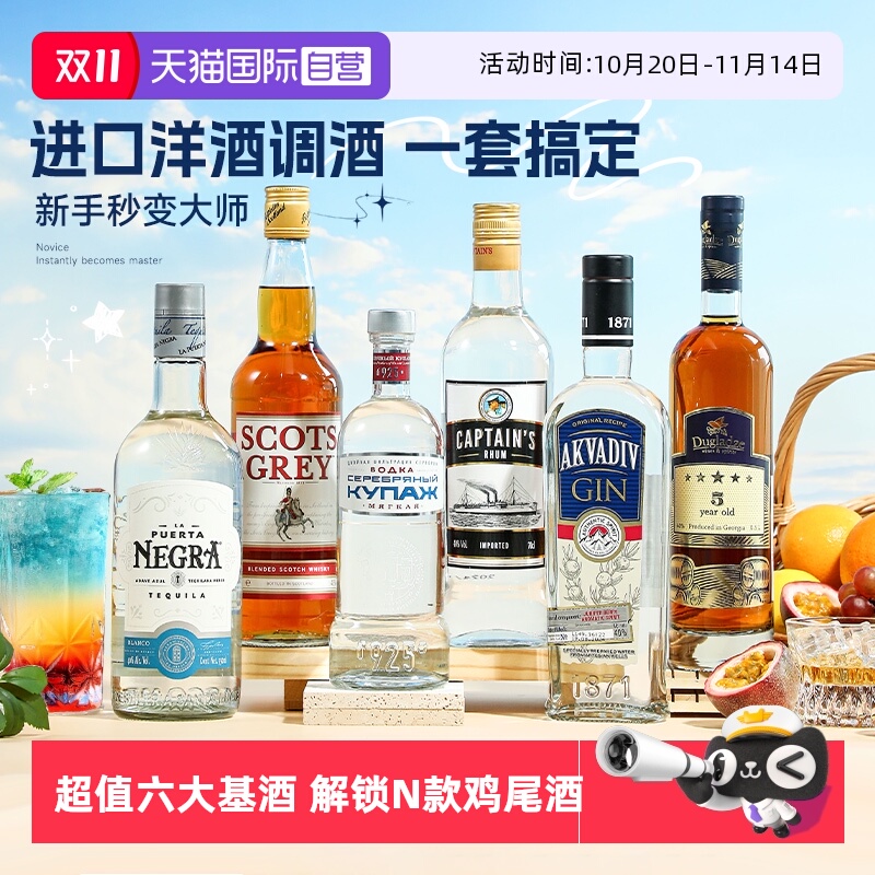 【自营】洋酒组合套装威士忌伏特加朗姆酒金酒龙舌兰调酒六大基酒