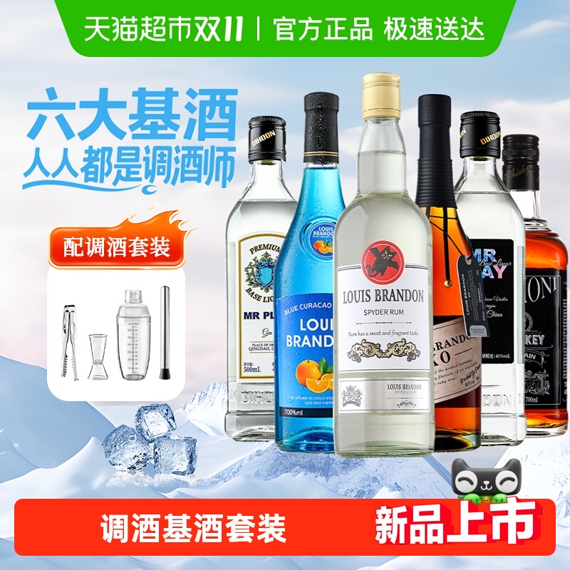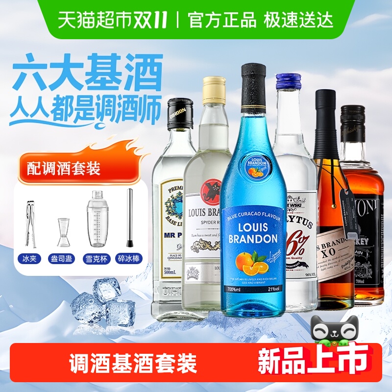 洋酒组合套装调酒基酒威士忌伏特加朗姆酒白兰地金酒蓝橙味力娇酒