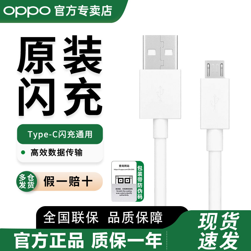 数据线Oppo安卓适用r17r15r11r9r7plus原装手机充电线k1k3k5k7k9快充线reno2/3/4/5专用micro