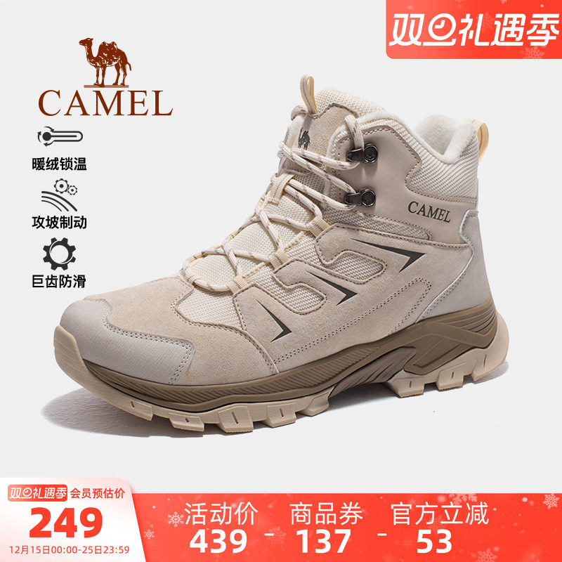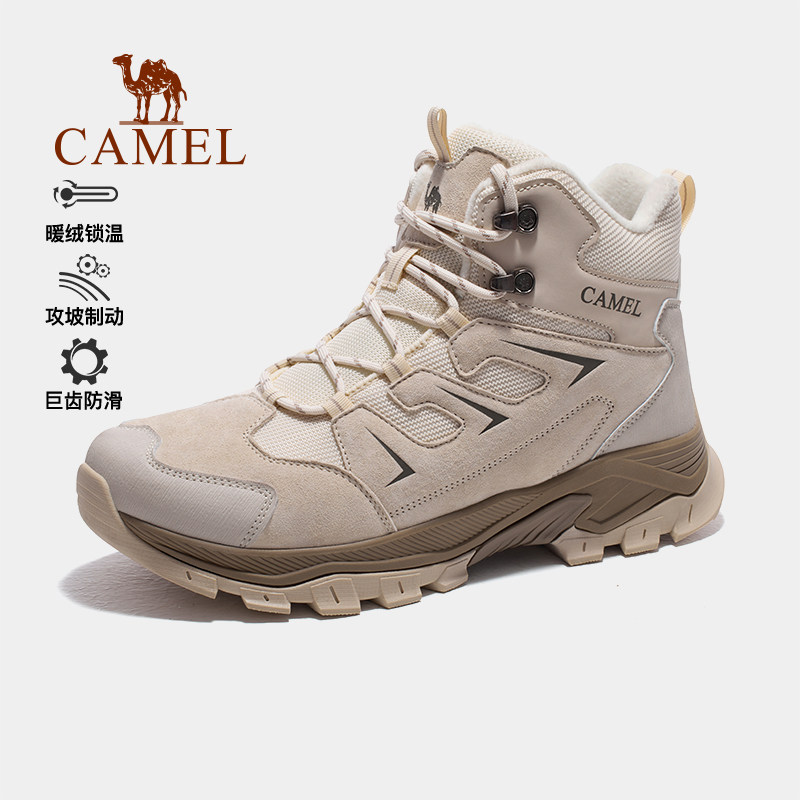 骆驼户外休闲登山鞋高帮男女鞋冬季加绒保暖棉鞋防滑耐磨徒步鞋子