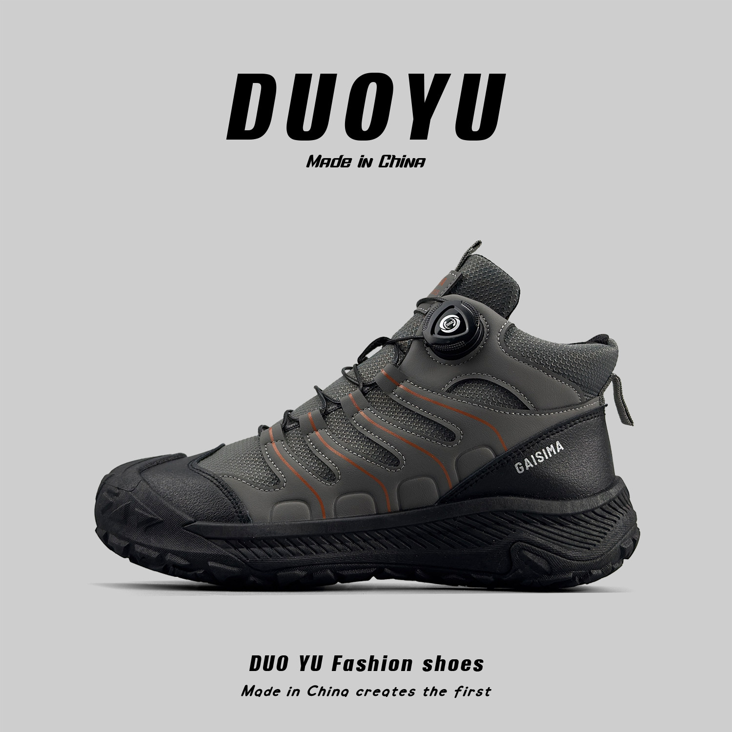 外贸男士旋转纽扣户外登山鞋高帮耐磨徒步鞋懒人防滑运动战术靴子