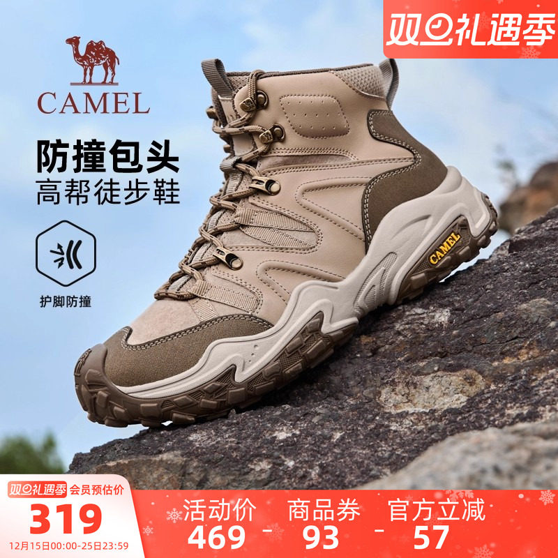 骆驼户外登山鞋高帮2025冬季新款耐磨厚底运动鞋增高户外徒步鞋男