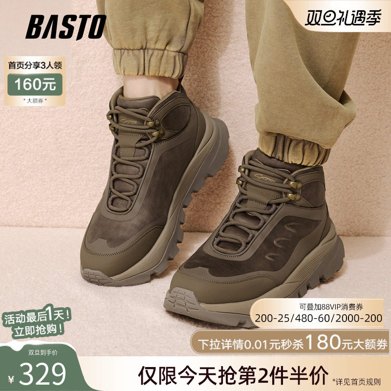 百思图25冬商场新款时尚加绒跑步登山鞋高帮男休闲运动鞋23656DD5