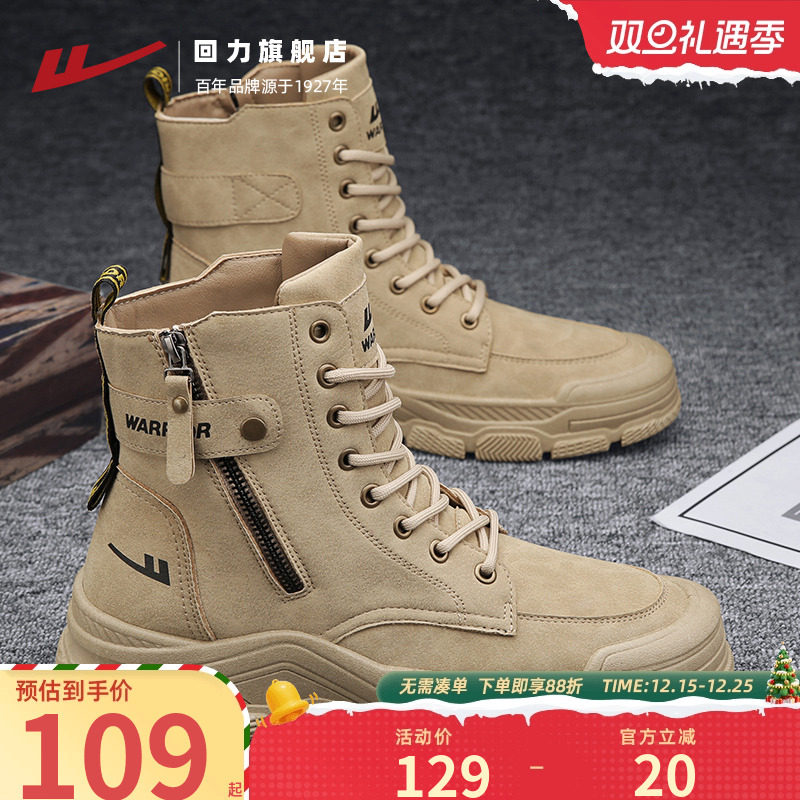 回力男鞋2025秋季新款帆布马丁靴止滑徒步登山鞋高帮工装鞋时尚鞋
