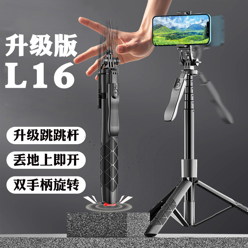 手机蓝牙自拍杆一体式三脚架落地自动弹开丢丢杆直播适用小米苹果
