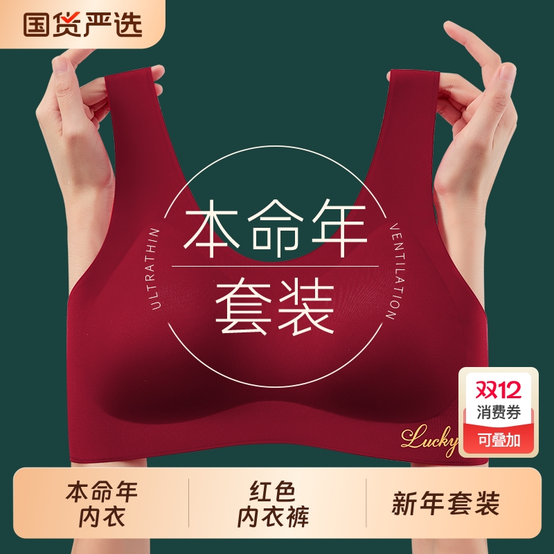 无痕本命年内衣内裤套装女士文胸红色结婚新娘属马年衣服礼物2026