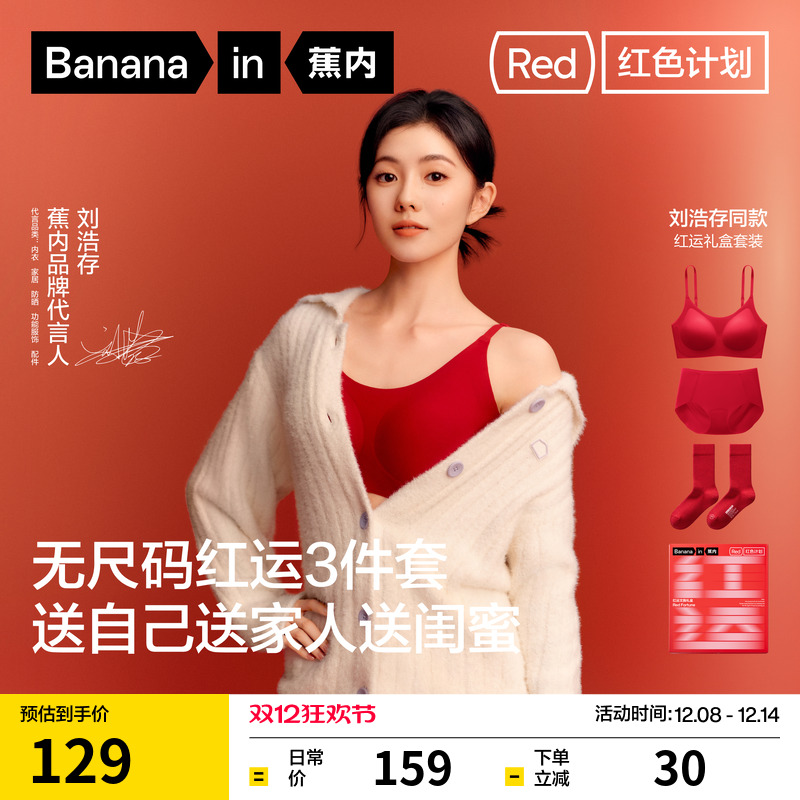 礼盒|蕉内红色计划5系文胸女无痕小胸聚拢送礼结婚本命年内衣套装