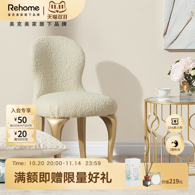 美克美家Rehome羊毛软包餐椅靠背坐椅轻奢椅子梳妆椅实木装饰家具