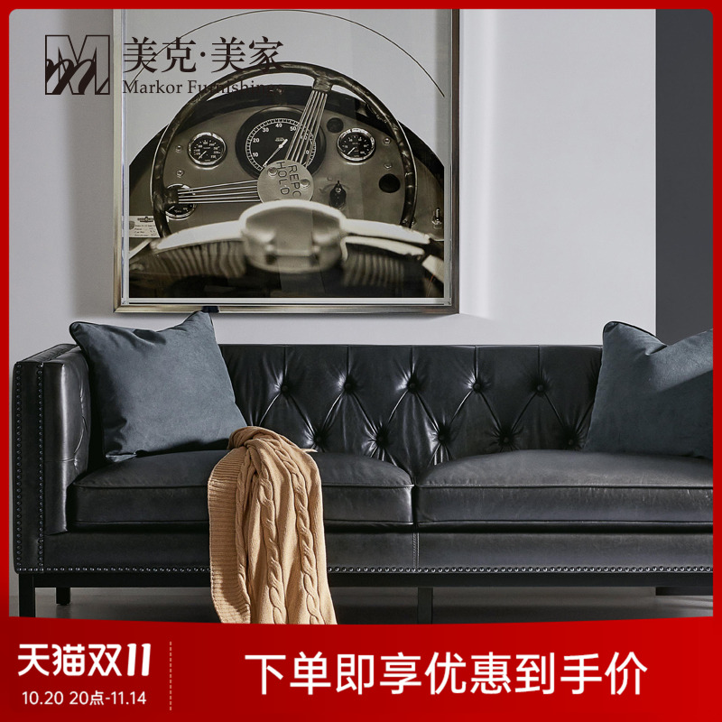 美克家具美家cara美式轻奢客厅金属法式复古拉扣布艺三人沙发定制