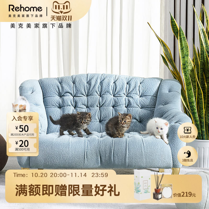 美克美家Rehome吐司布艺儿童沙发卡座实木高档家具法式小户型推荐