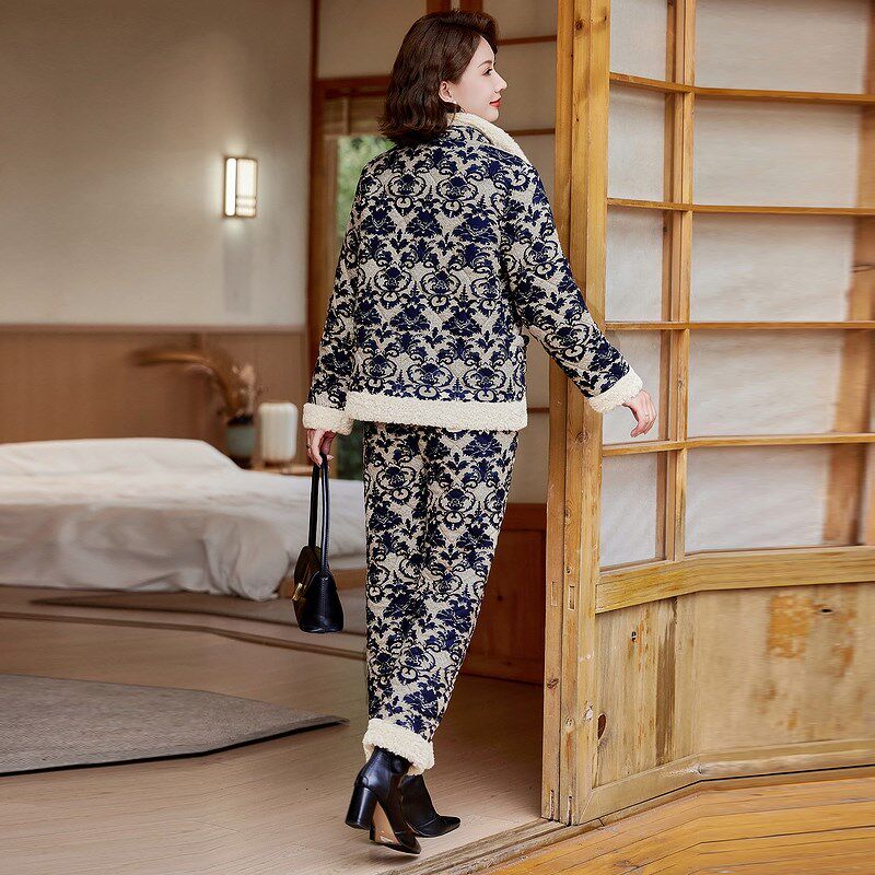 【2件套】中老年女装棉衣外套冬季妈妈加绒奶奶棉服棉裤保暖套装