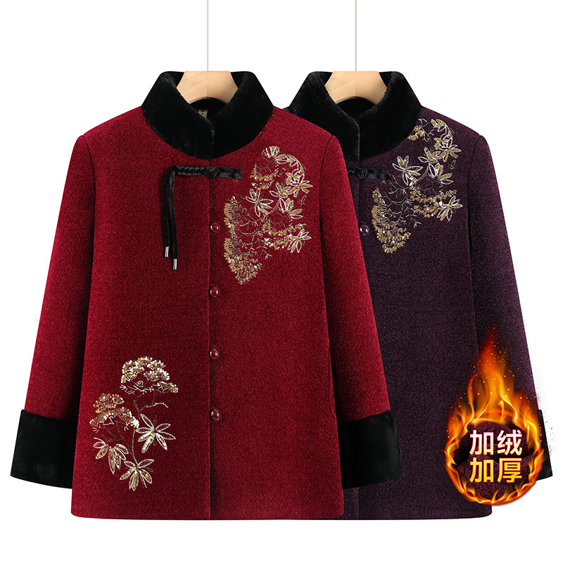 中老年女装棉衣刺绣立领老年奶奶外套冬季保暖加绒加厚气质妈妈装