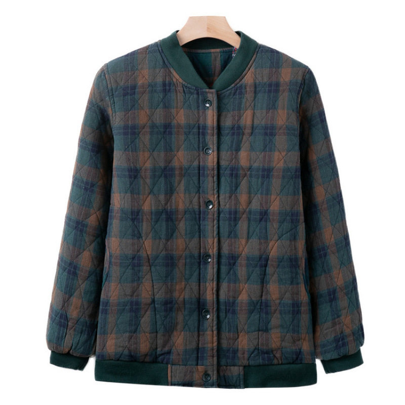 中老年女装棉衣纯棉奶奶装加厚格子棉袄妈妈棉服短款老人冬装衣服