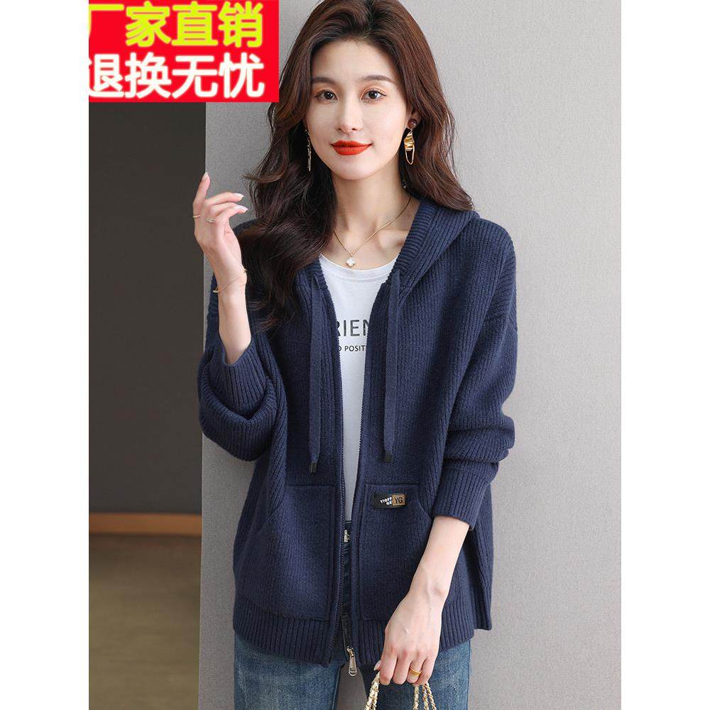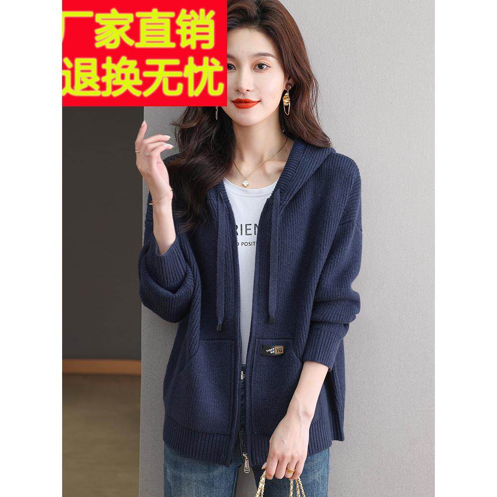 加码春季和秋季超大码连帽运动衫女性宽松2025新羊毛针织开衫加脂