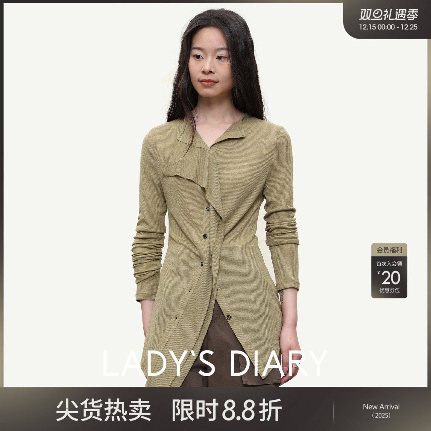 女性日记原创设计感飘带长袖开衫新款修身显瘦针织打底衫别致上衣