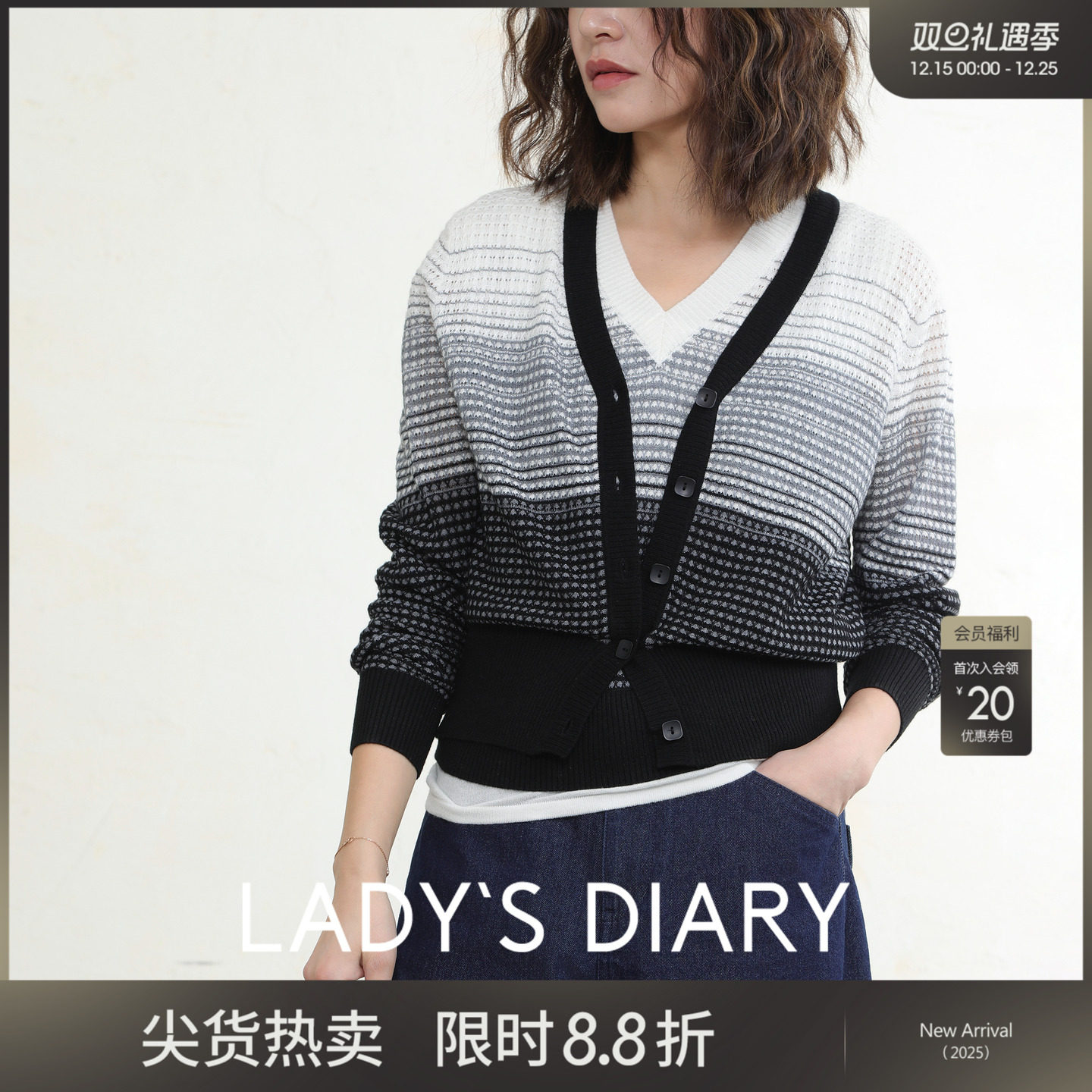 女性日记绵羊毛针织开衫新款小众高级感今年流行渐变色长袖毛衣薄