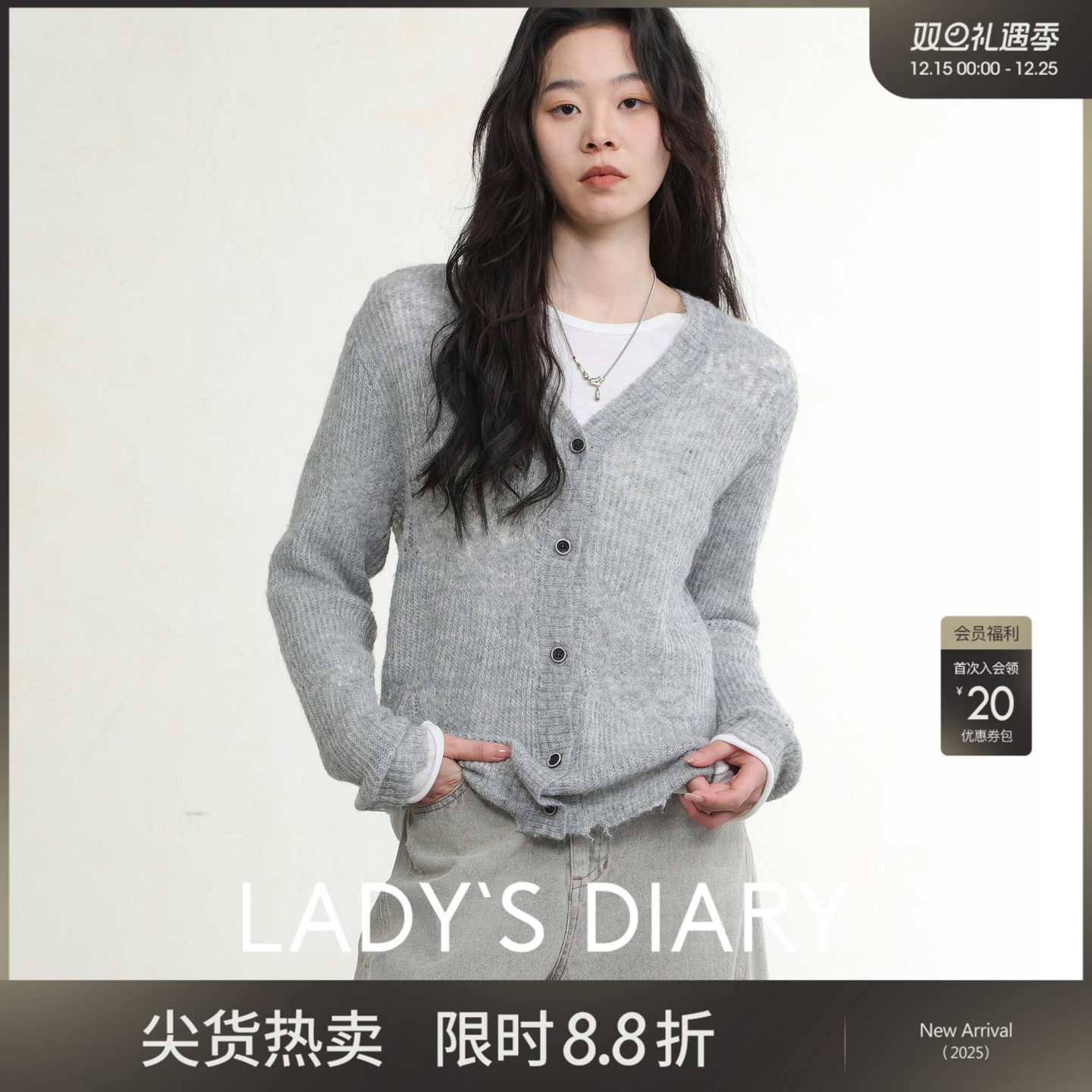 女性日记开衫毛衣2025春秋季新款软糯海马毛磨毛破边V领针织衫
