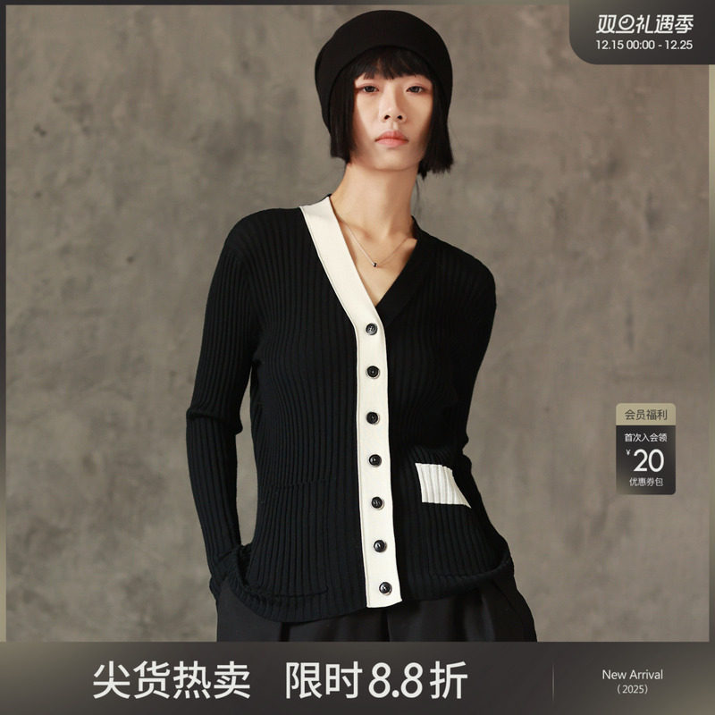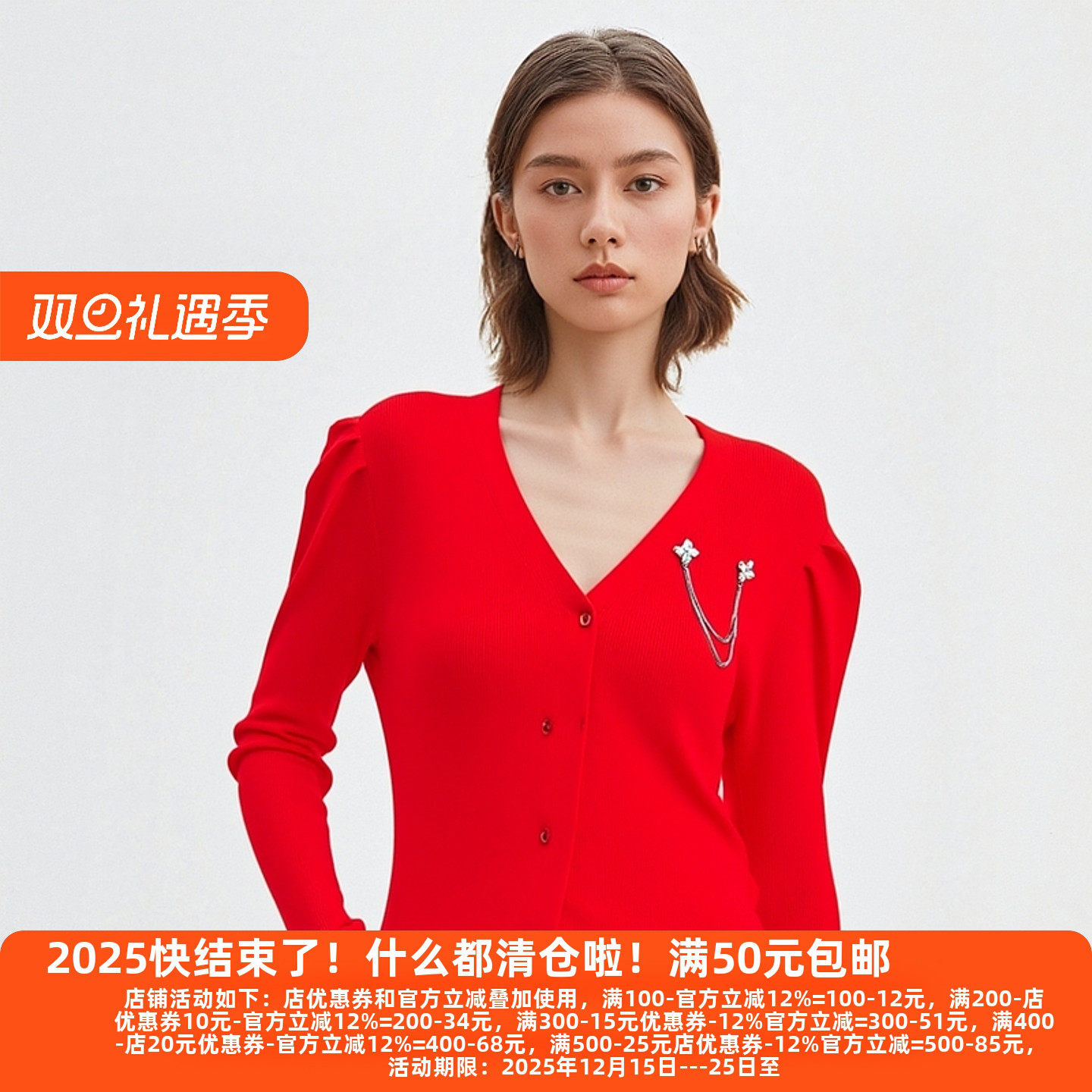 丽新折扣女装 P飘 系列25秋冬新款年轻都市女性V领链条开衫针织衫