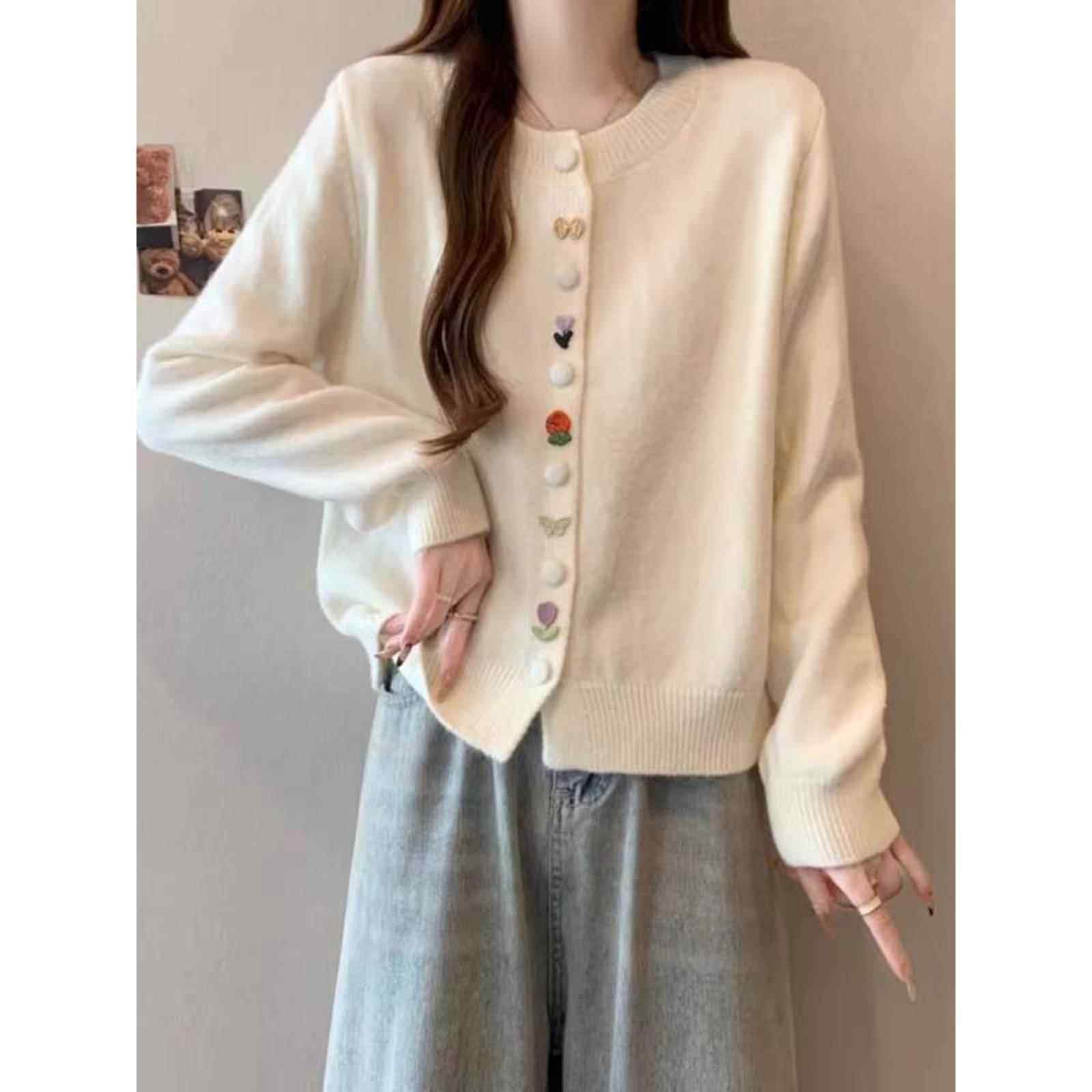 女性日记开衫毛衣2024春秋韩系穿搭修身显瘦单排扣针织开衫上衣