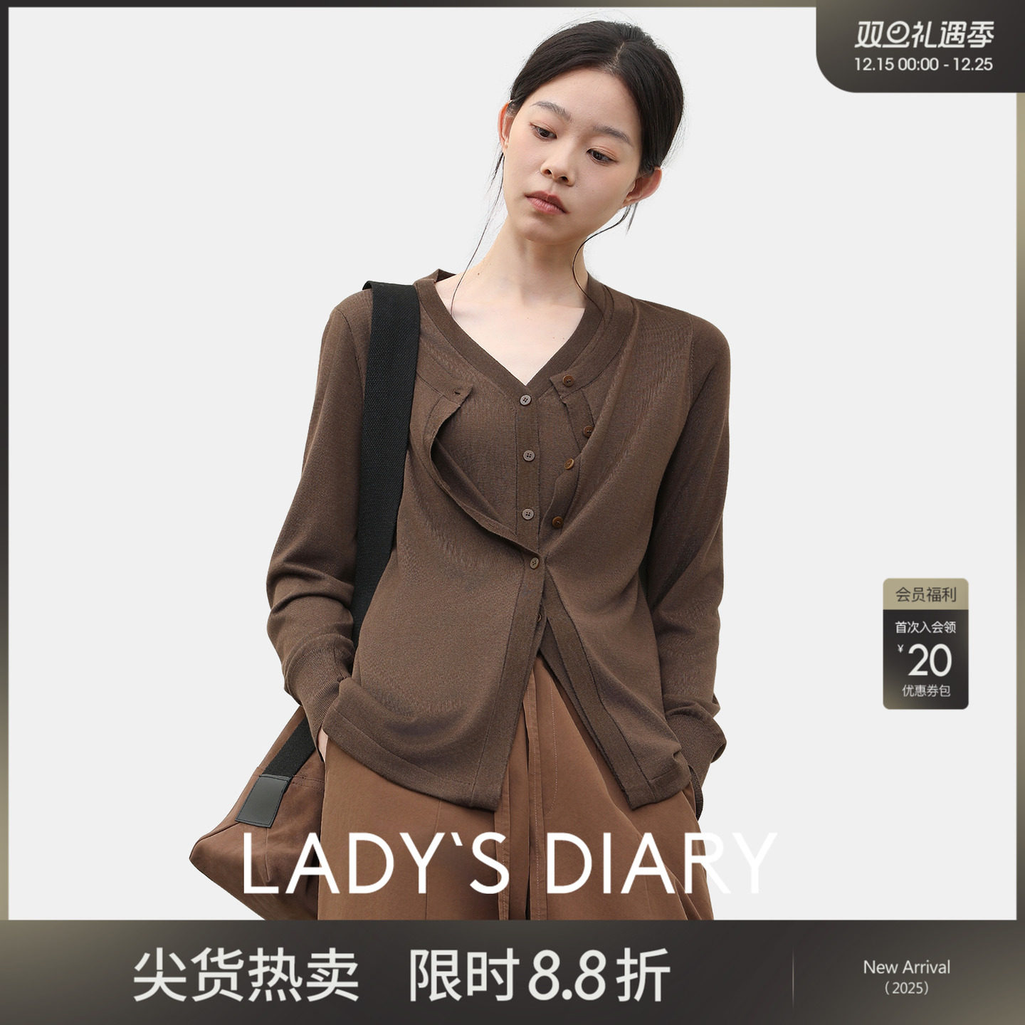 女性日记法式复古假两件针织衫2025秋季绵羊毛舒适柔软开衫上衣