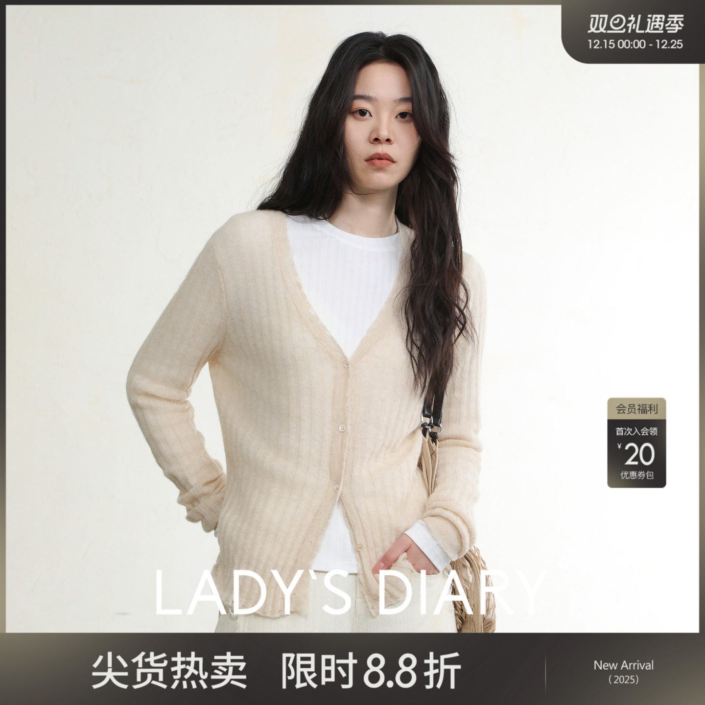 女性日记绵羊毛V领净色针织毛衫女2025冬装新款柔软舒适毛衣外套
