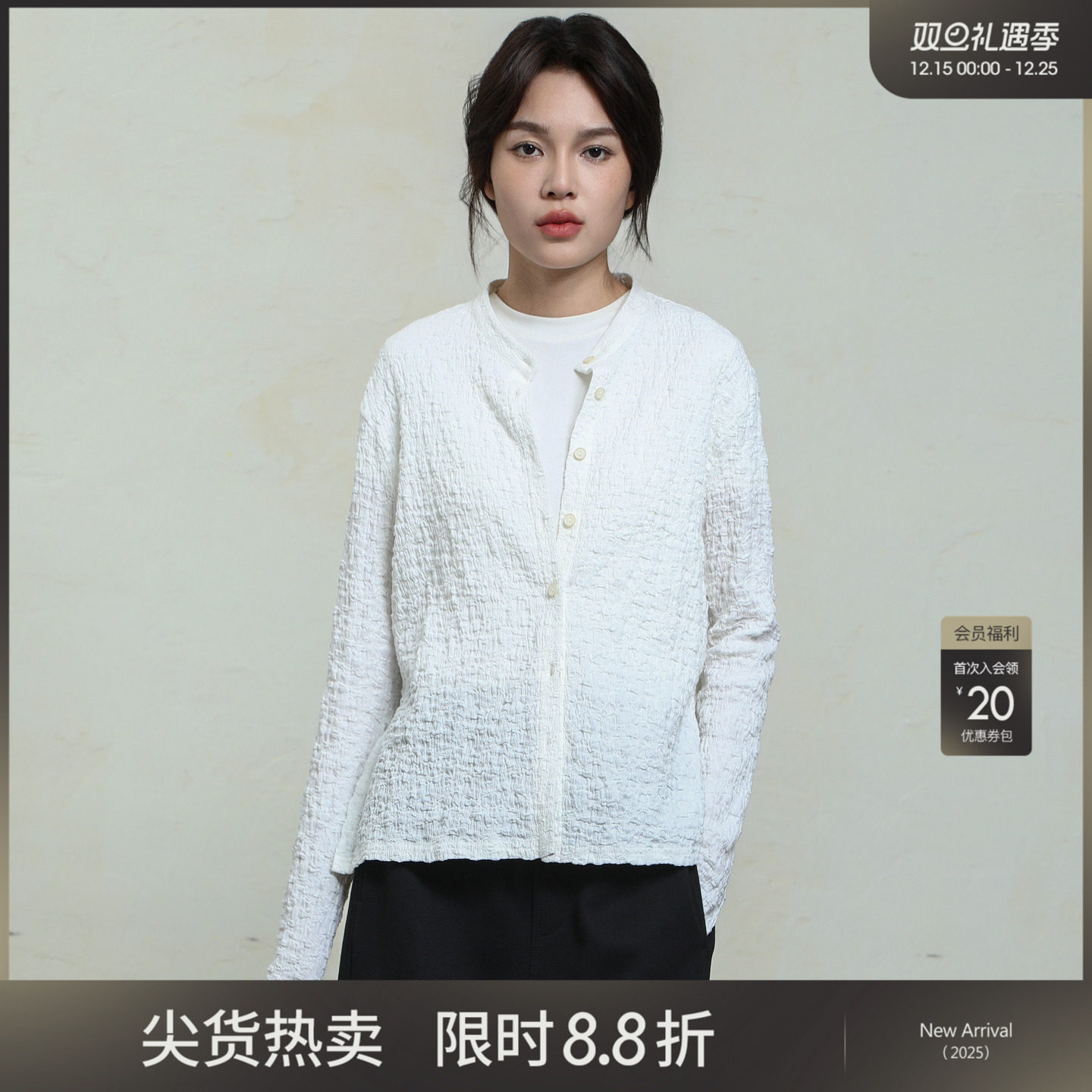 女性日记原创设计女装褶皱肌理单排扣针织外套春季女长袖宽松开叉