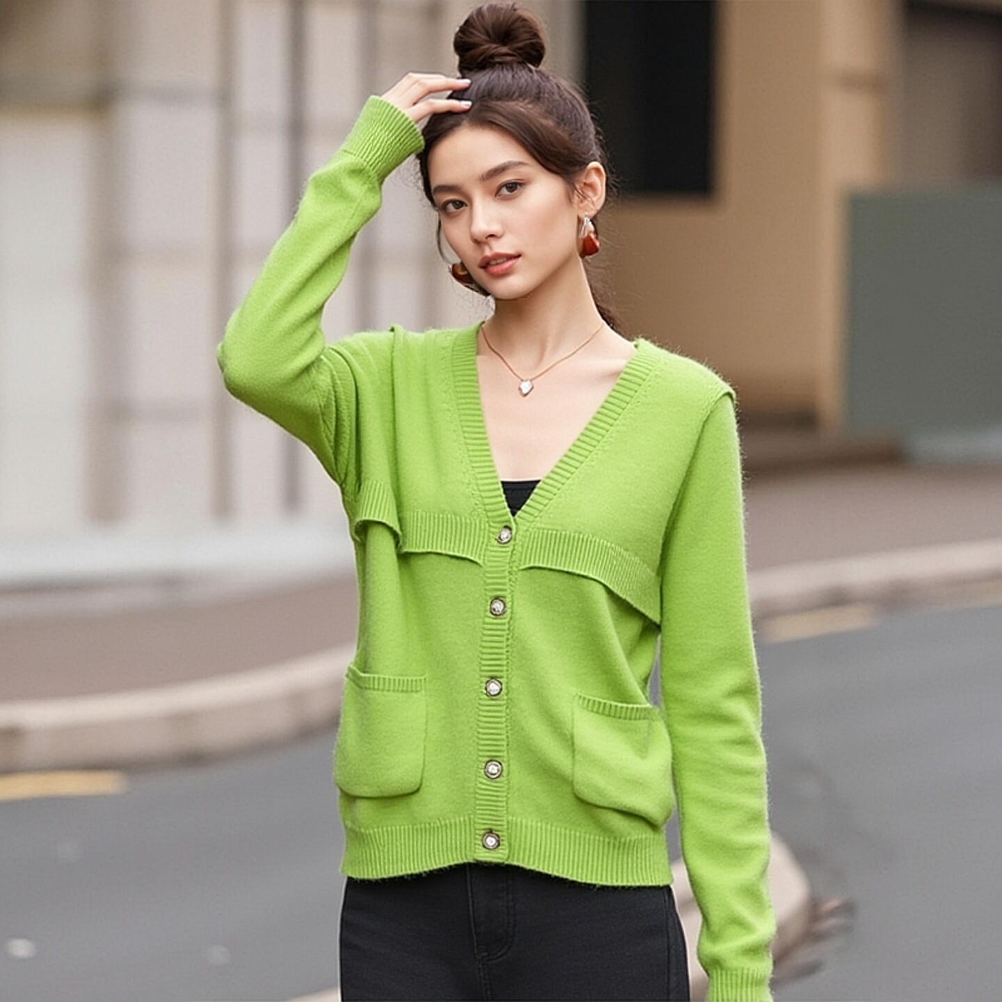 2025新秋季女性休闲风格宽松慵懒中长风格百搭时尚针织开衫趋势