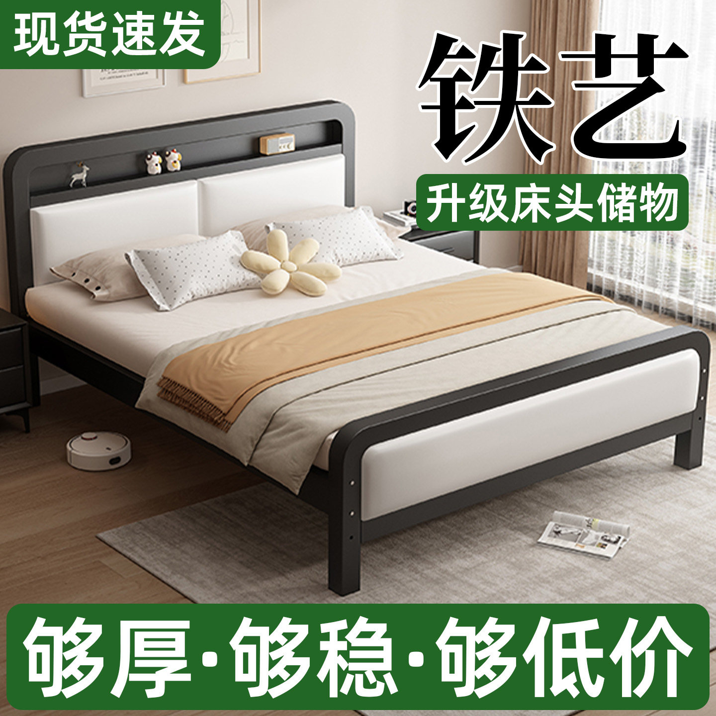 铁艺床现代简约主卧双人铁床加固加厚宿舍单人床经济型储物铁架床