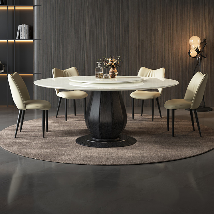 天然大理石餐桌带电动转盘奢石圆桌意式轻奢高级感家用圆形餐桌椅