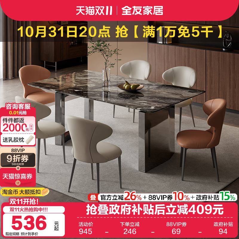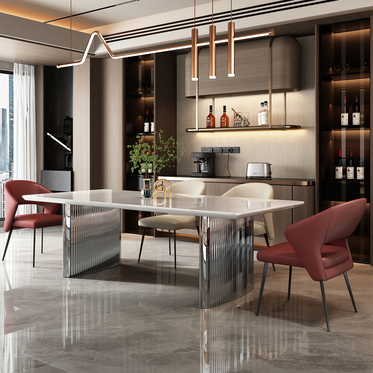 铂金钻奢石餐桌椅现代简约意式轻奢定制尺寸长方形毫宅大理石餐桌