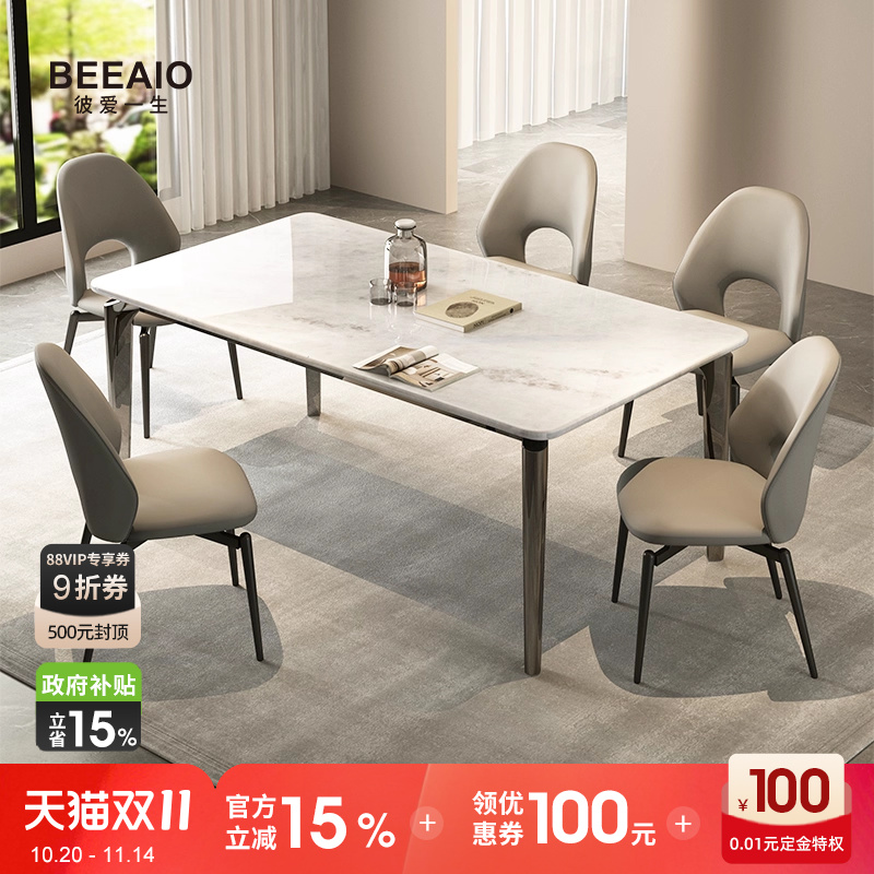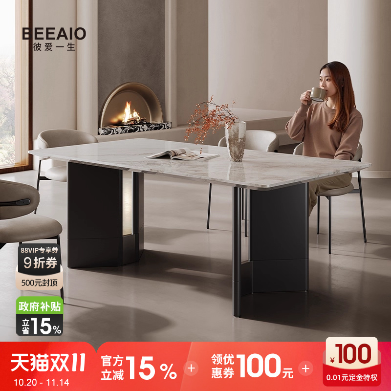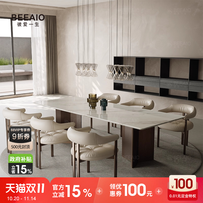 彼爱纯天然奢石餐桌2025新高端意式极简长方形大理石餐桌椅家用