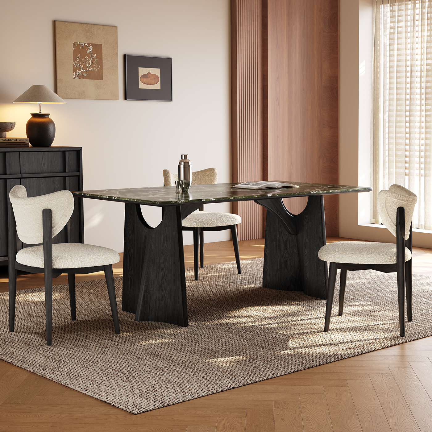 奥古斯特大理石餐桌长方形意式极简家用高端黑色复古实木岩板餐桌