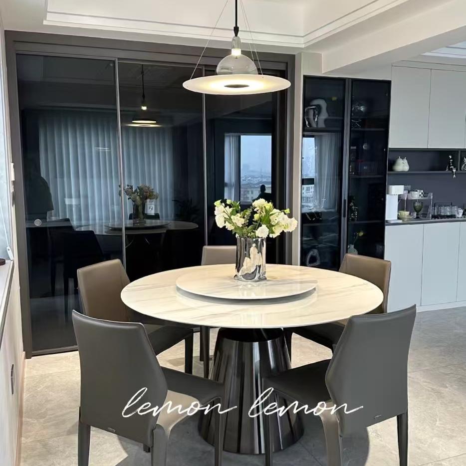 2025新款意式轻奢大理石圆餐桌带转盘高端岩板微晶石餐桌椅组合