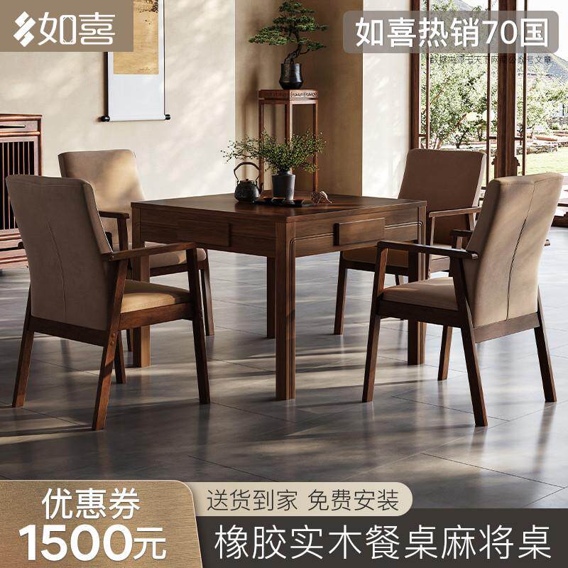 如喜26款新中式实木麻将桌橡胶木餐桌两用全自动家用麻将机#悦家